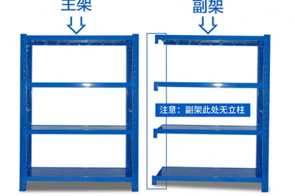 主架是指可以单独摆放的库房货架,由两个框架和横梁等部件组成。而副架是由一个框架组成,比主架少一个框架,价格是比主架低一些的。副架不可以单独摆放,要和主架连在一起才能使用。比如一排要摆10个仓储货架,那只需要一个主架,其它的都可以和它前边的一组同用一个框架,其余9个都用副架即可。这样摆放会比一排全部用主架划算一些。