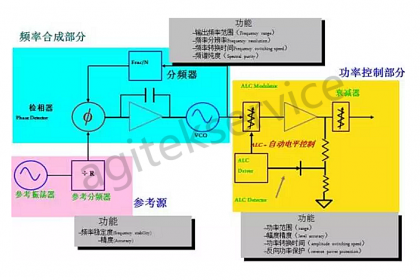 功率扫描需要关注:功率扫描范围,功率斜率范围,源匹配。功率扫描通过:自动电平控制ALC,ALC检测器,ALC驱动器和ALC调制器配合完成。